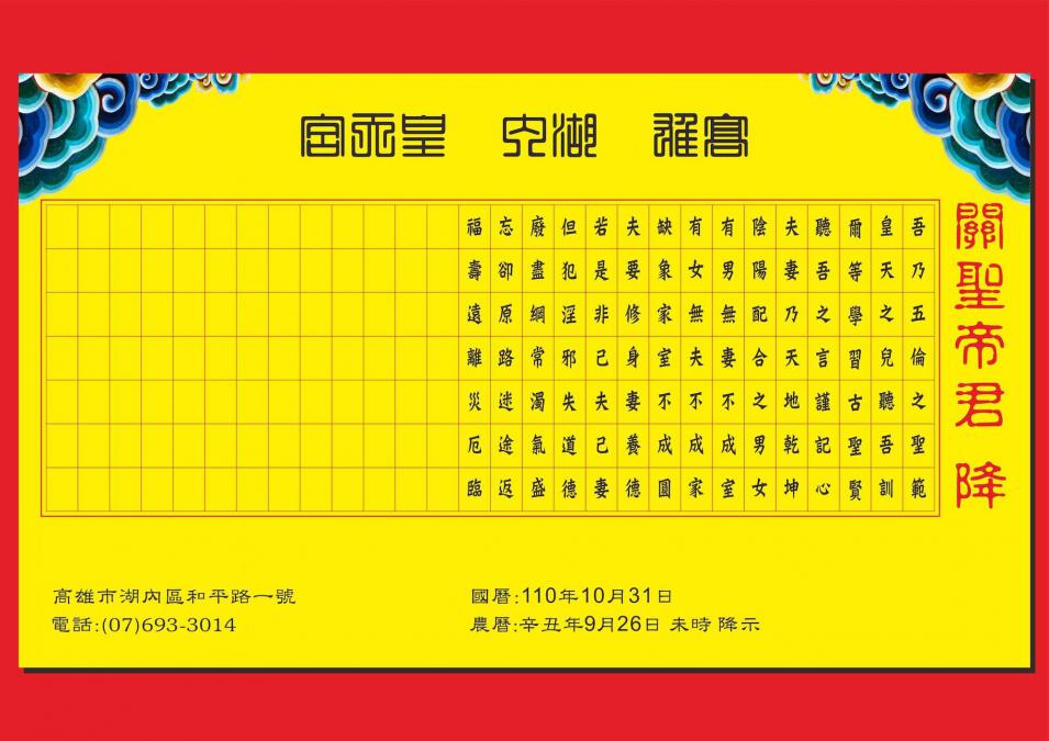 關聖帝君降文1100926